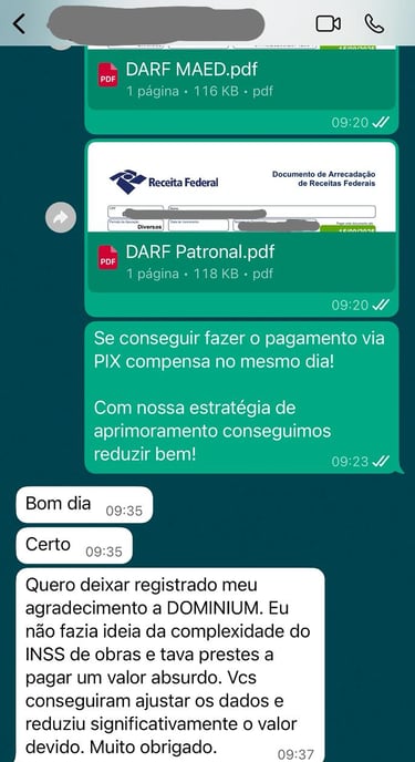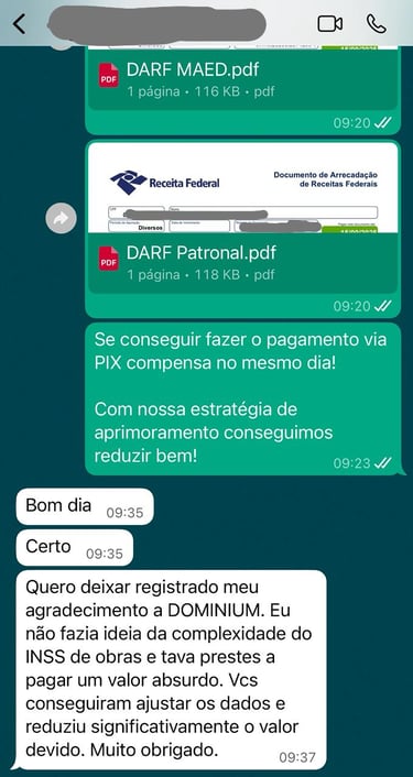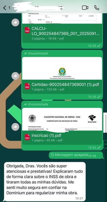 A confiança da Dominium é construída através de resultados reais em regularização de INSS de obras.