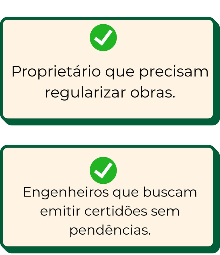 Mais do que regularizar, nossa missão é trazer tranquilidade, proteger o seu patrimônio e assegurar que sua obra esteja sempre em conformidade com a legislação.